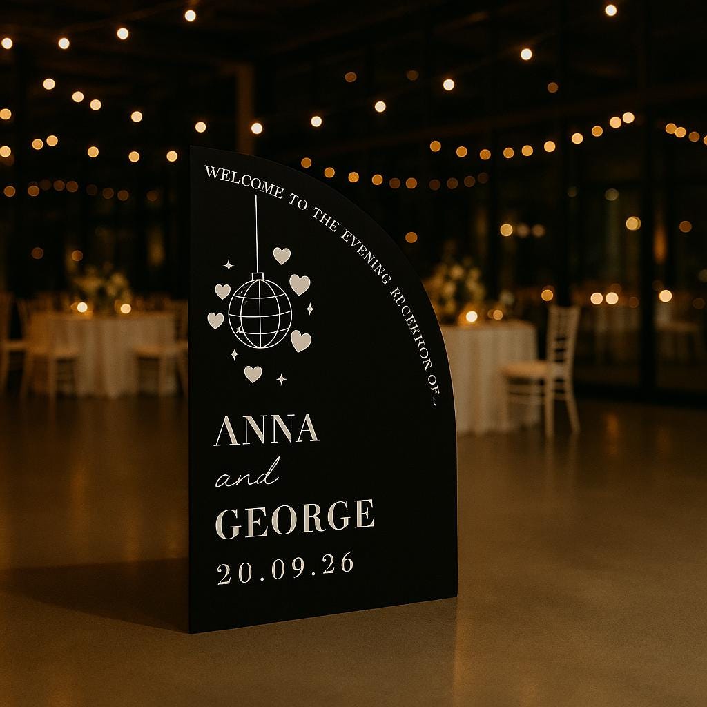 Disco Ball Wedding Welcome Sign - Evening Reception, Wedding Sign, Luxury Signs, Personalised Signs - Made to order & designed in the UK