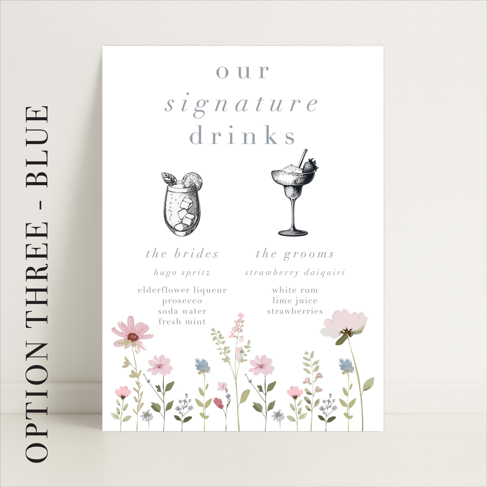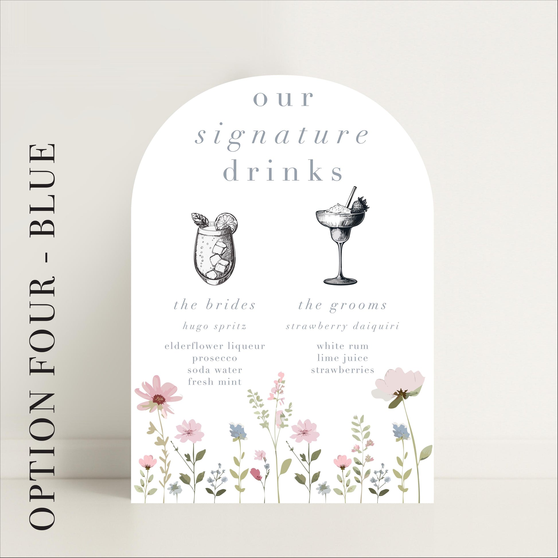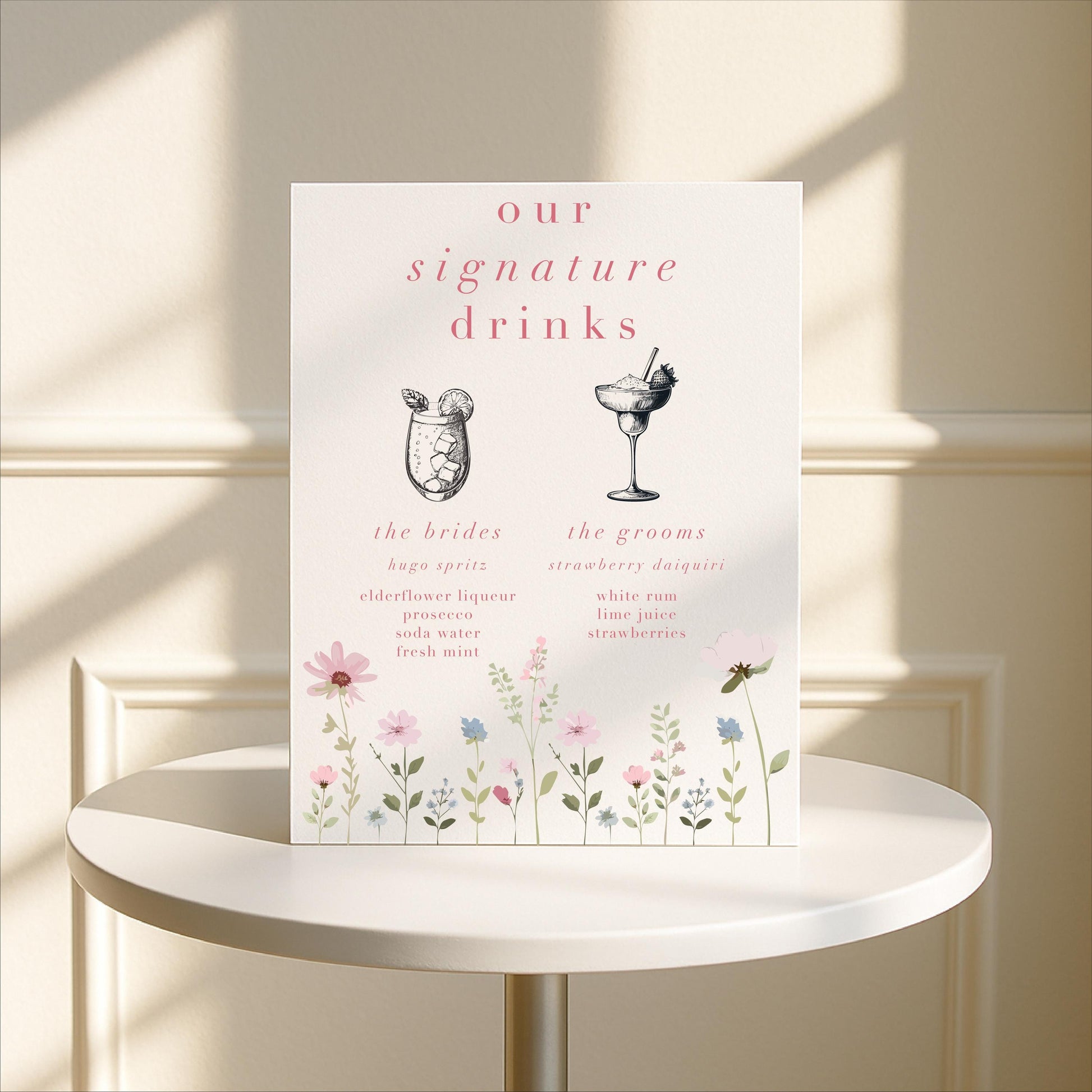 Ditsy Floral Wedding Bar Sign - Arched or Rectangle – Bar Menu, Signature Drinks, Personalised, Luxury –Made to order & designed in the UK