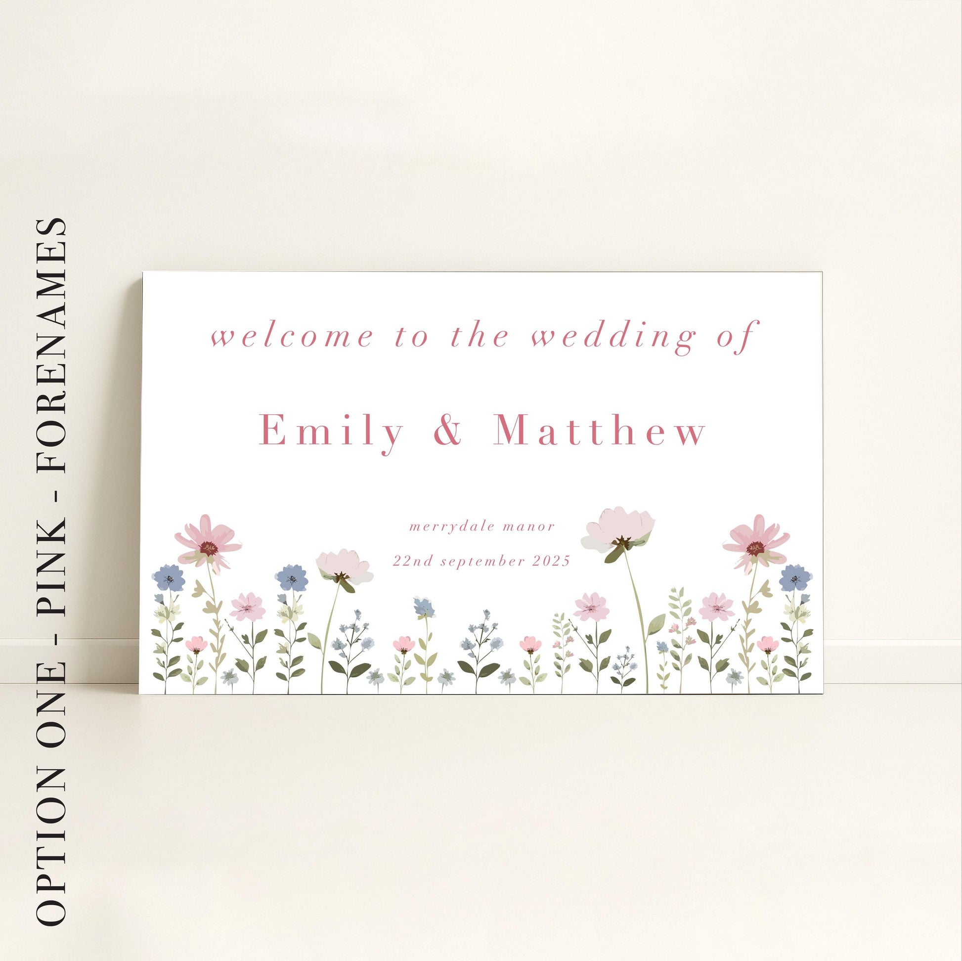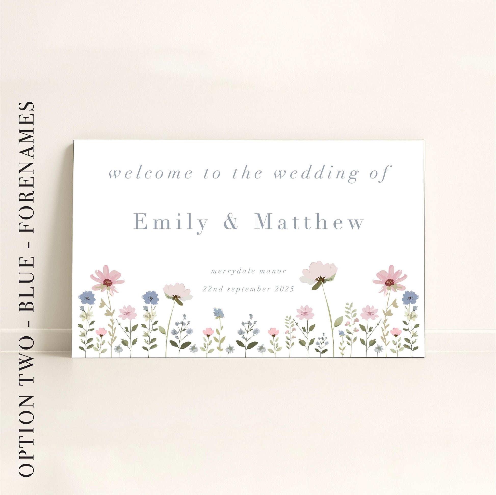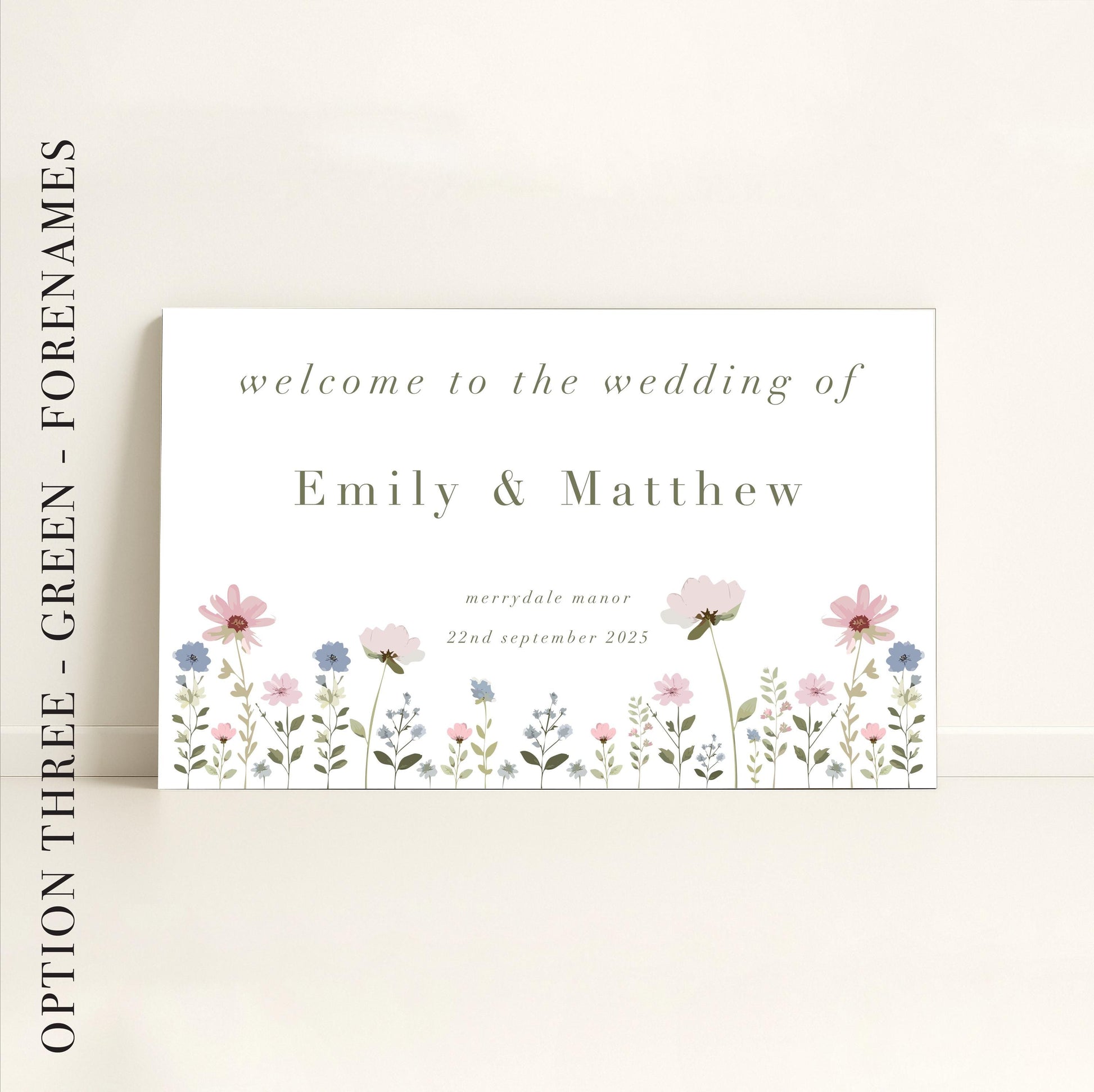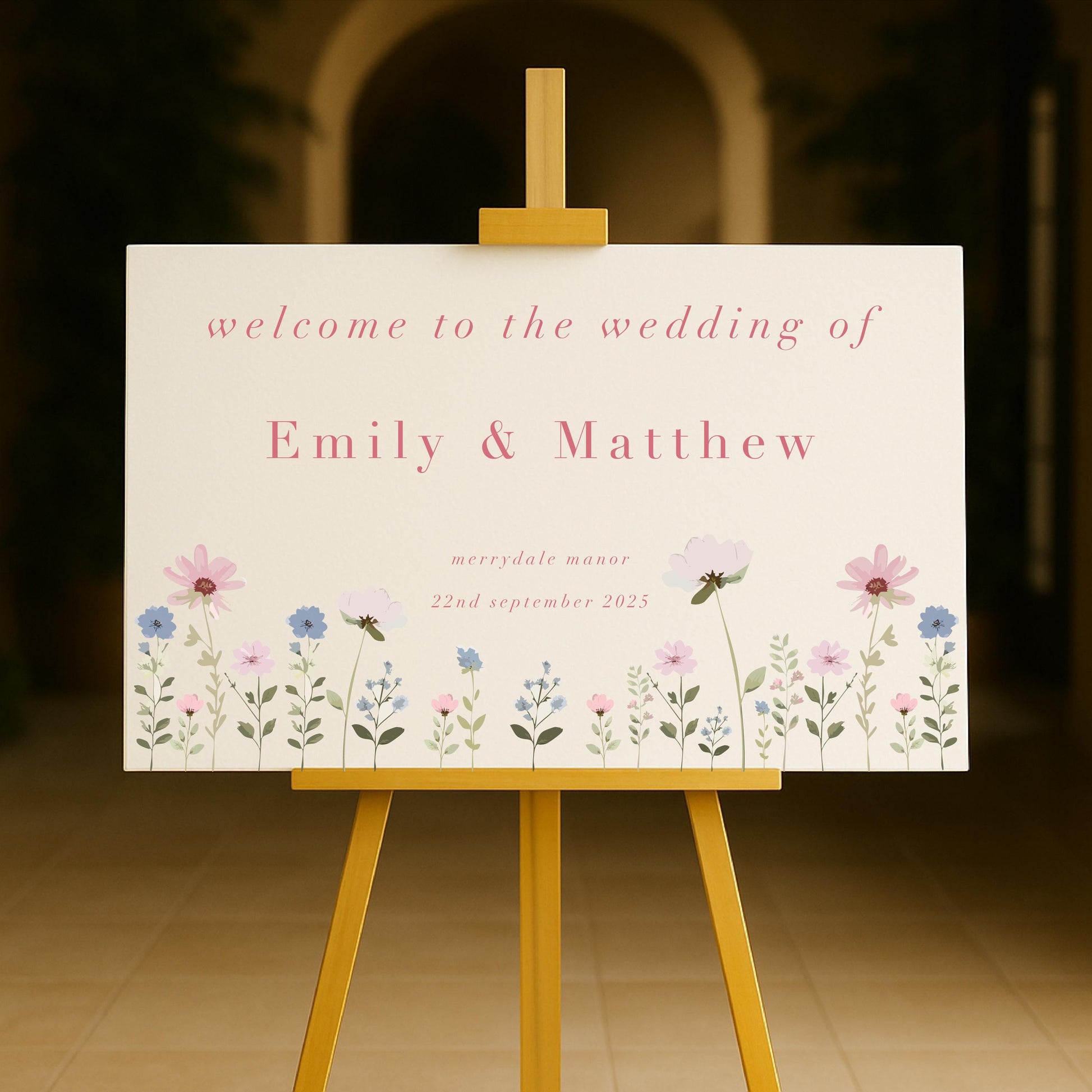 Ditsy Floral Wedding Day Welcome Sign Landscape - Wedding Sign, Luxury, Pastel Wedding, Wedding Trends - Made to order & designed in the UK