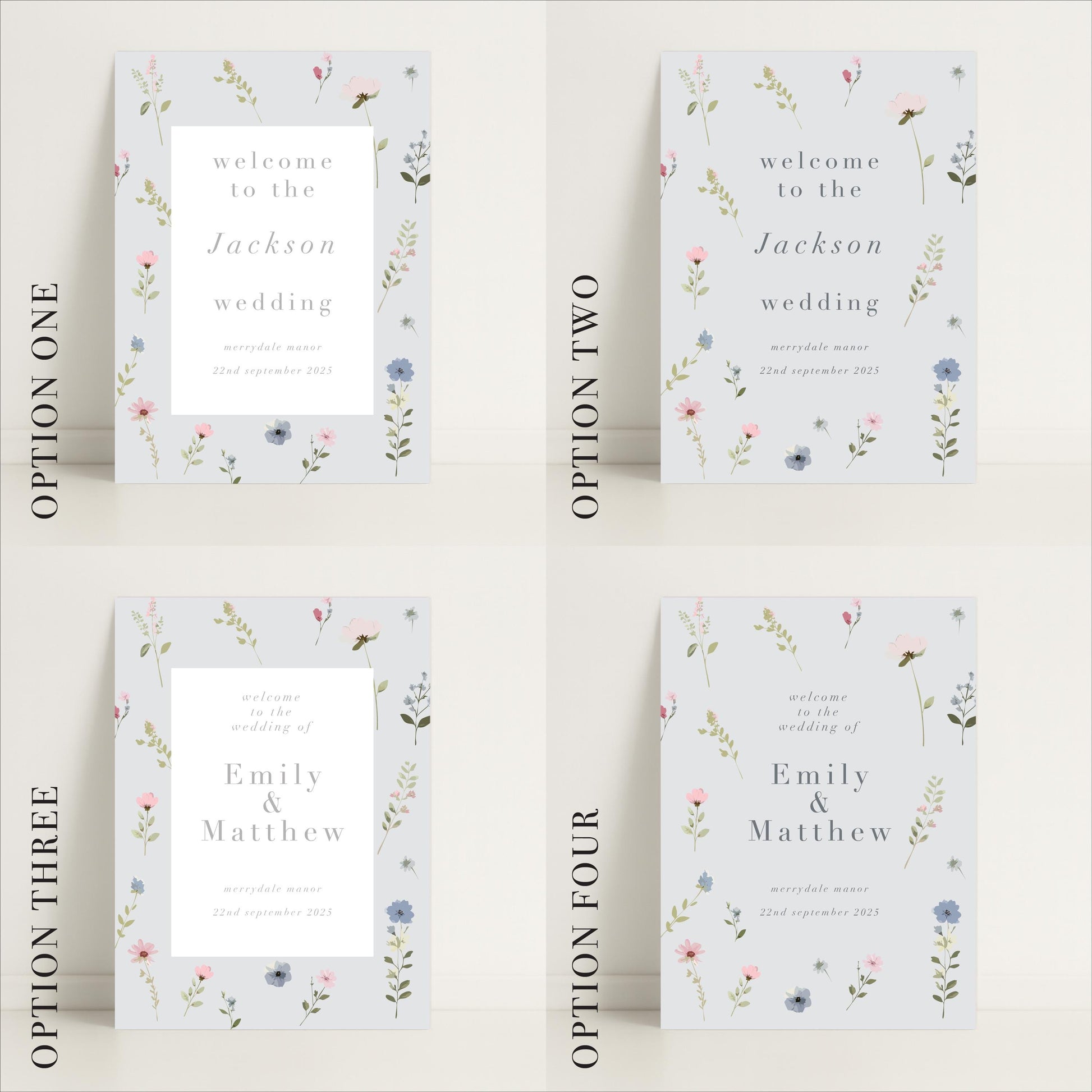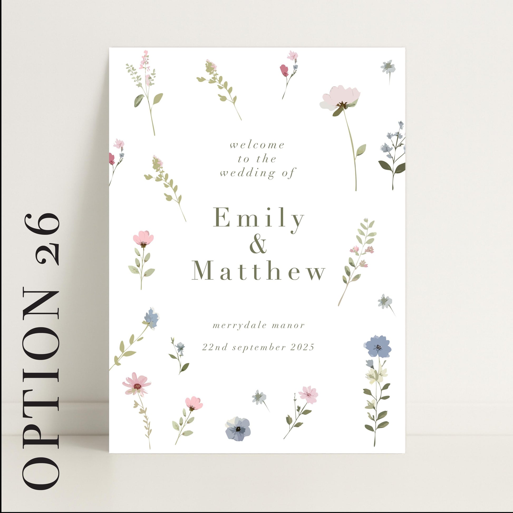 Ditsy Floral Wedding Day Welcome Sign – Personalsied, Wedding Sign, Luxury, Pastels, Wedding Trends - Made to order & designed in the UK