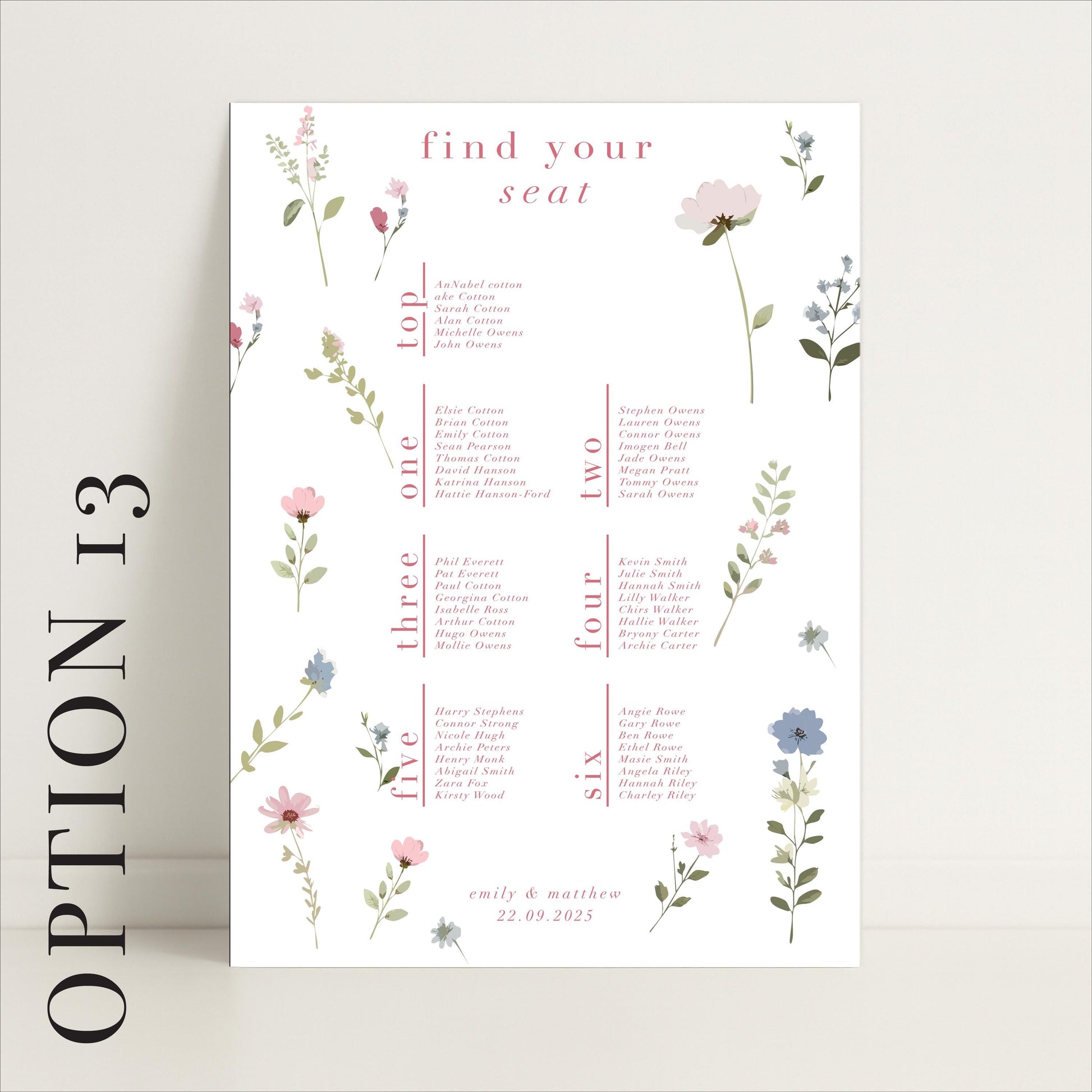 Ditsy Floral Wedding Seating Chart Sign – Personalised, Wedding Sign, Luxury, Pastels, Wedding Trends - Made to order & designed in the UK