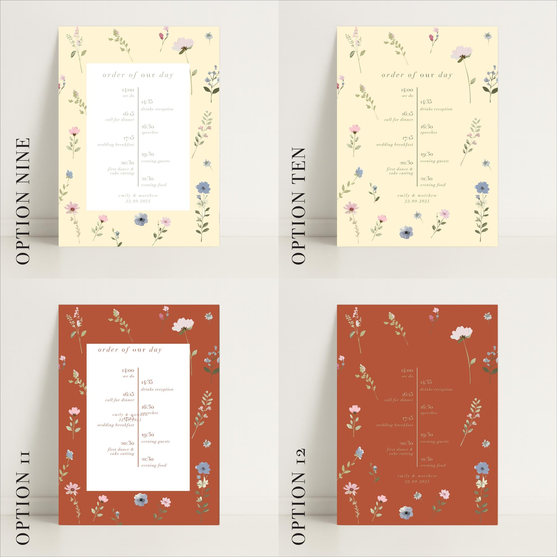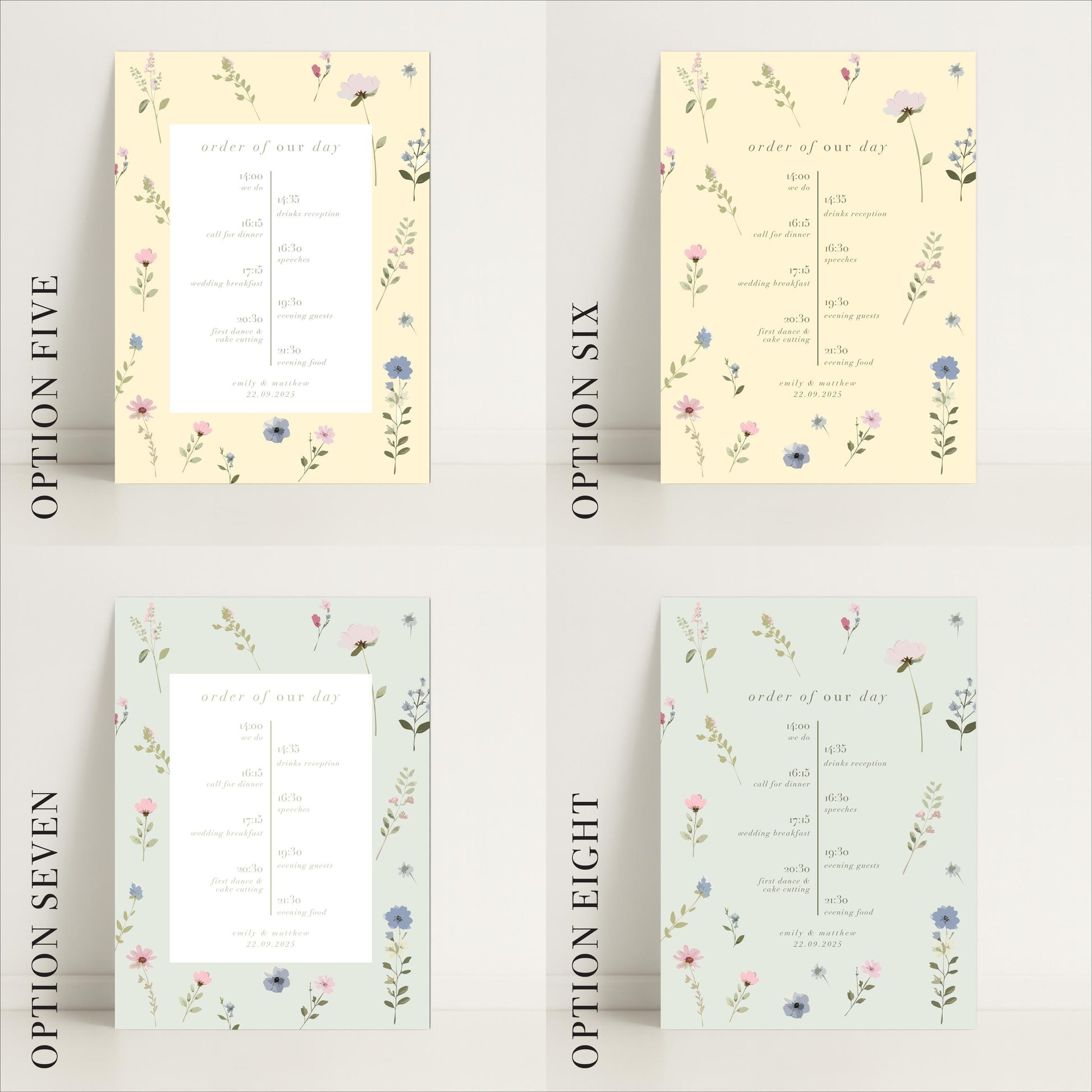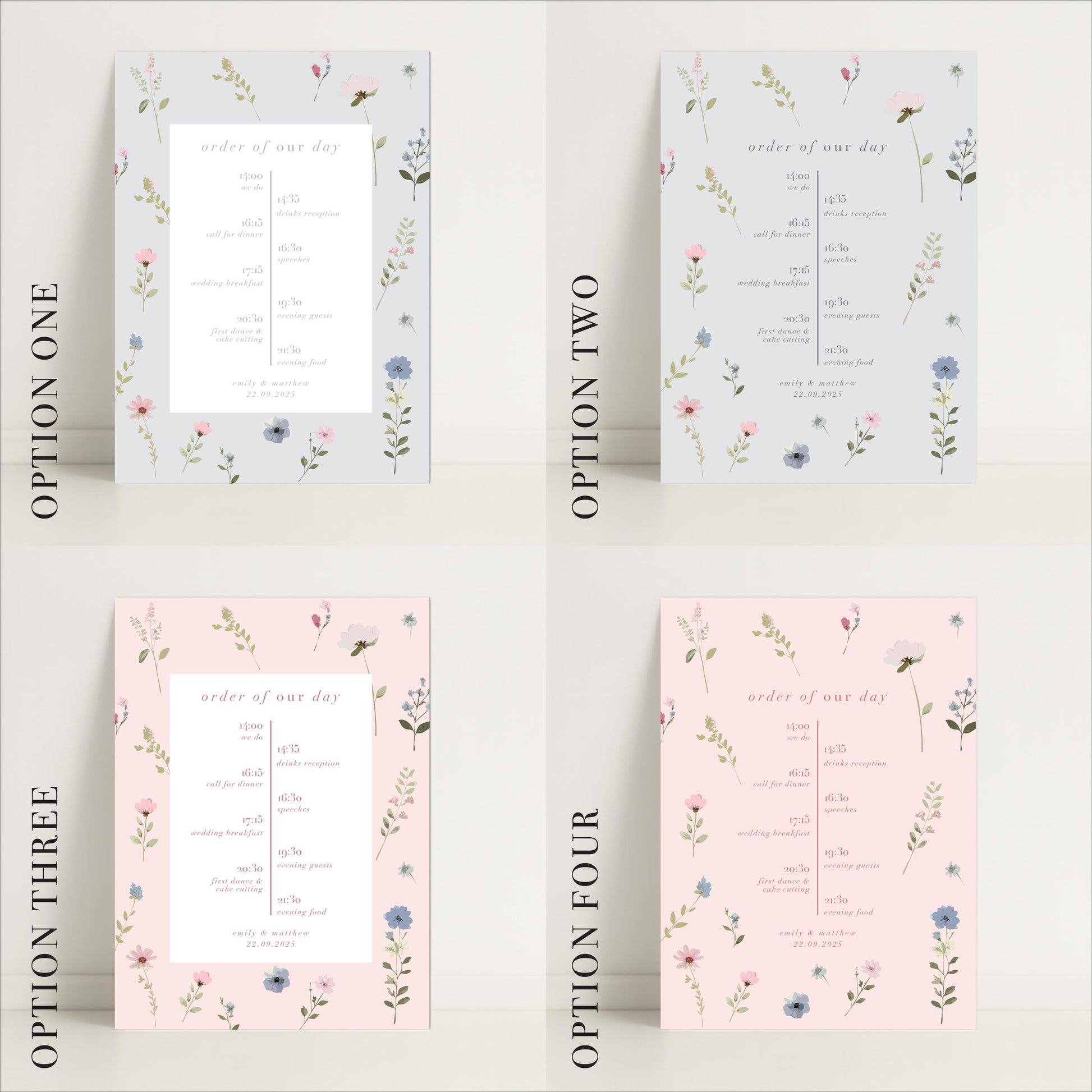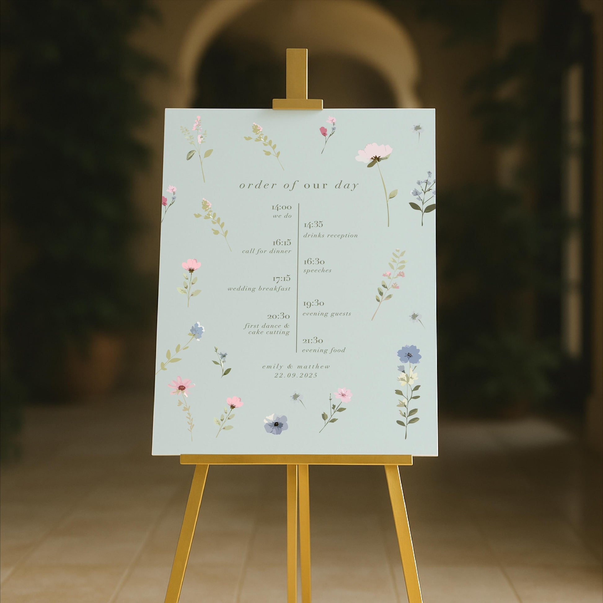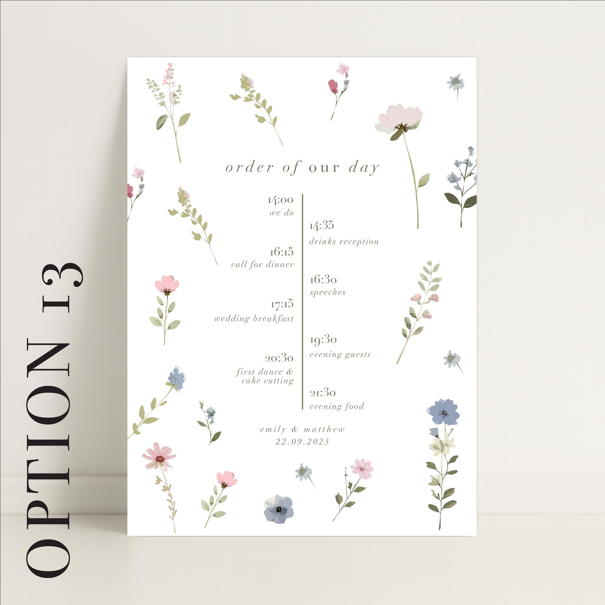 Ditsy Floral Wedding Timeline Sign – Vintage style - Personalised Sign, Made to Order in the UK