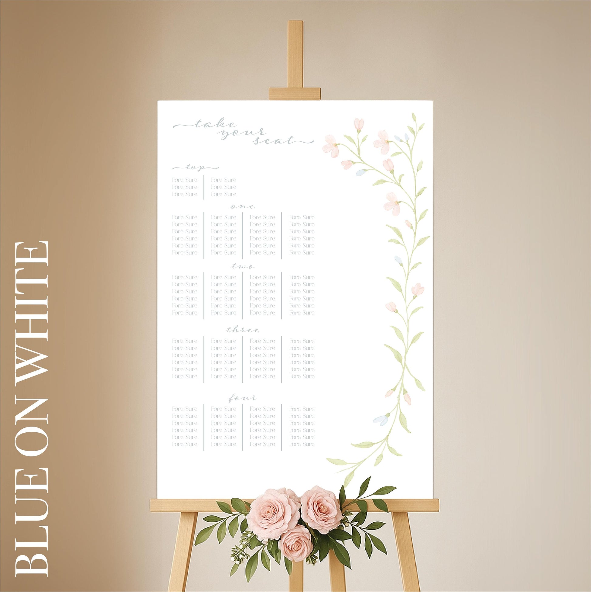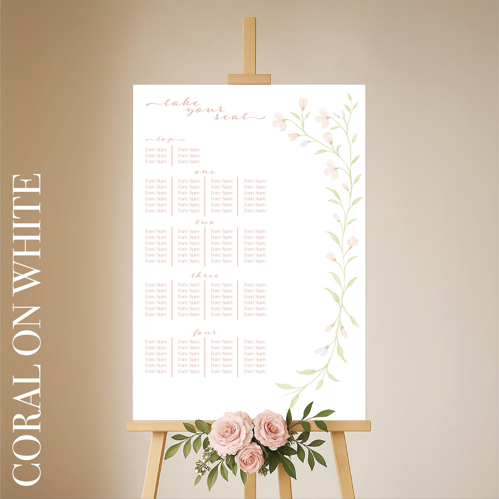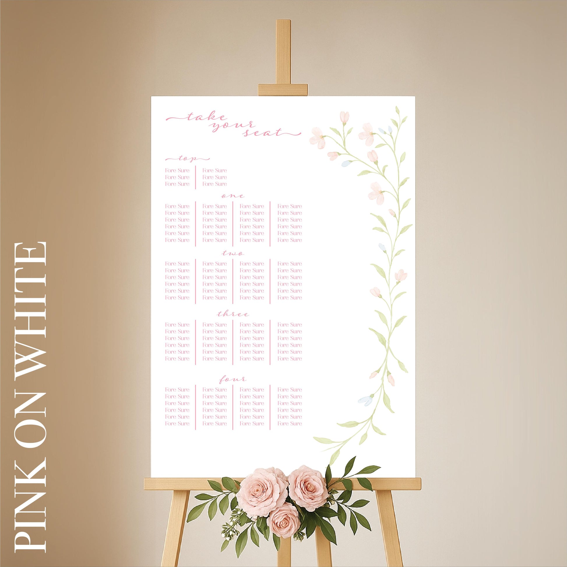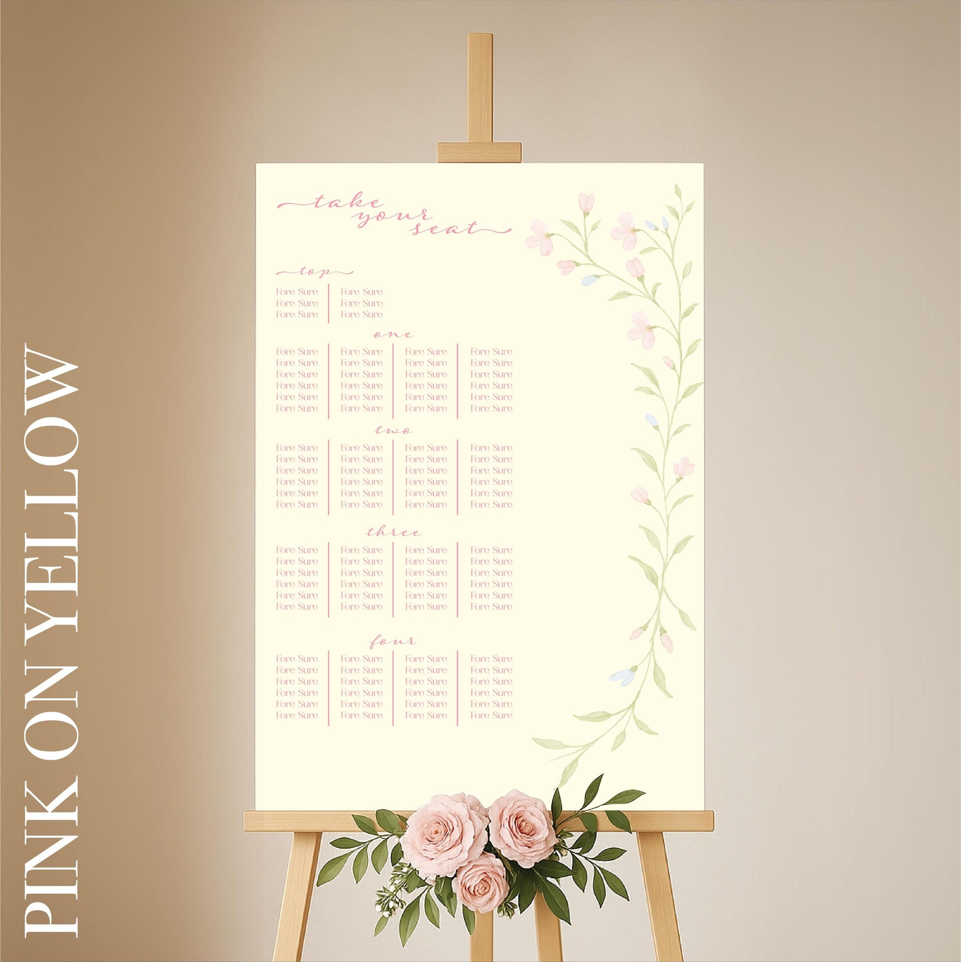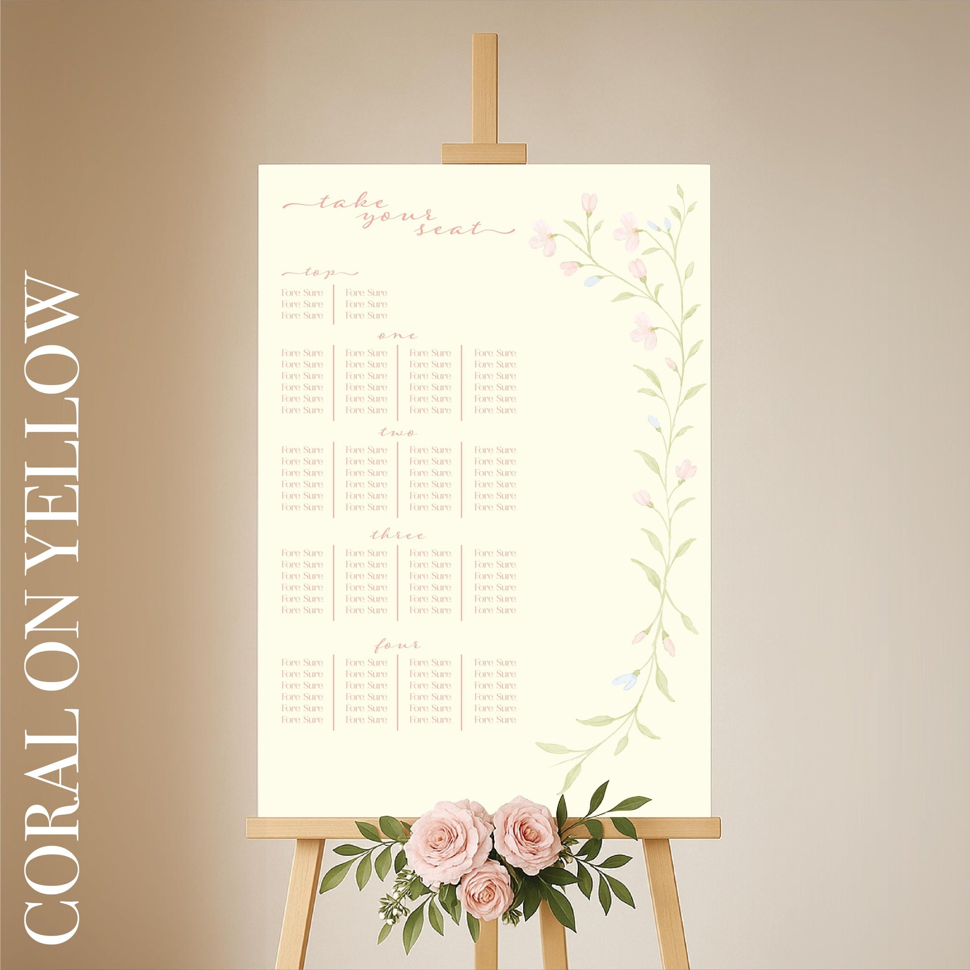 Floral Watercolour Wedding Seating Chart Sign – Personalised, Wedding Sign, Luxury, Pastels, Trending - Made to order & designed in the UK
