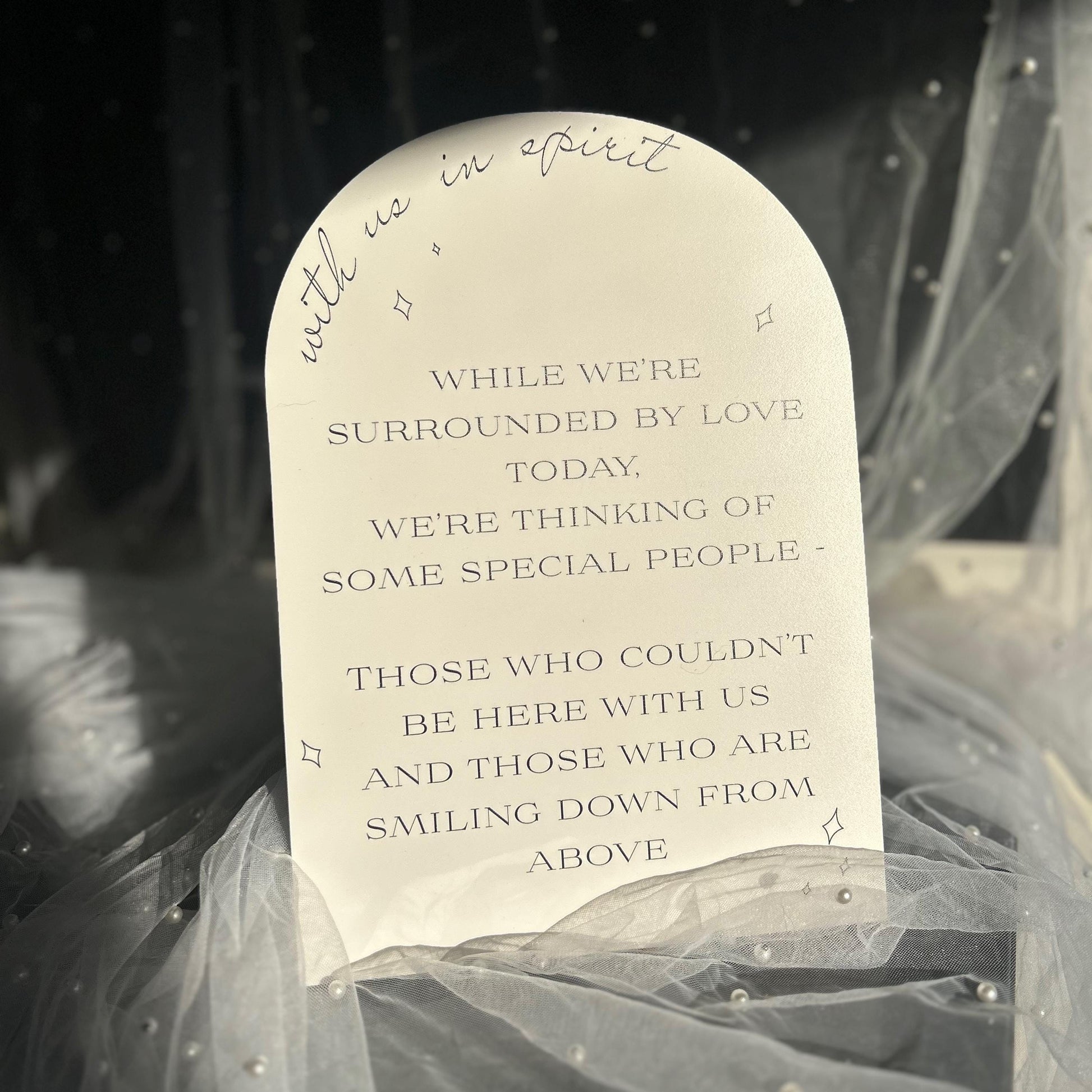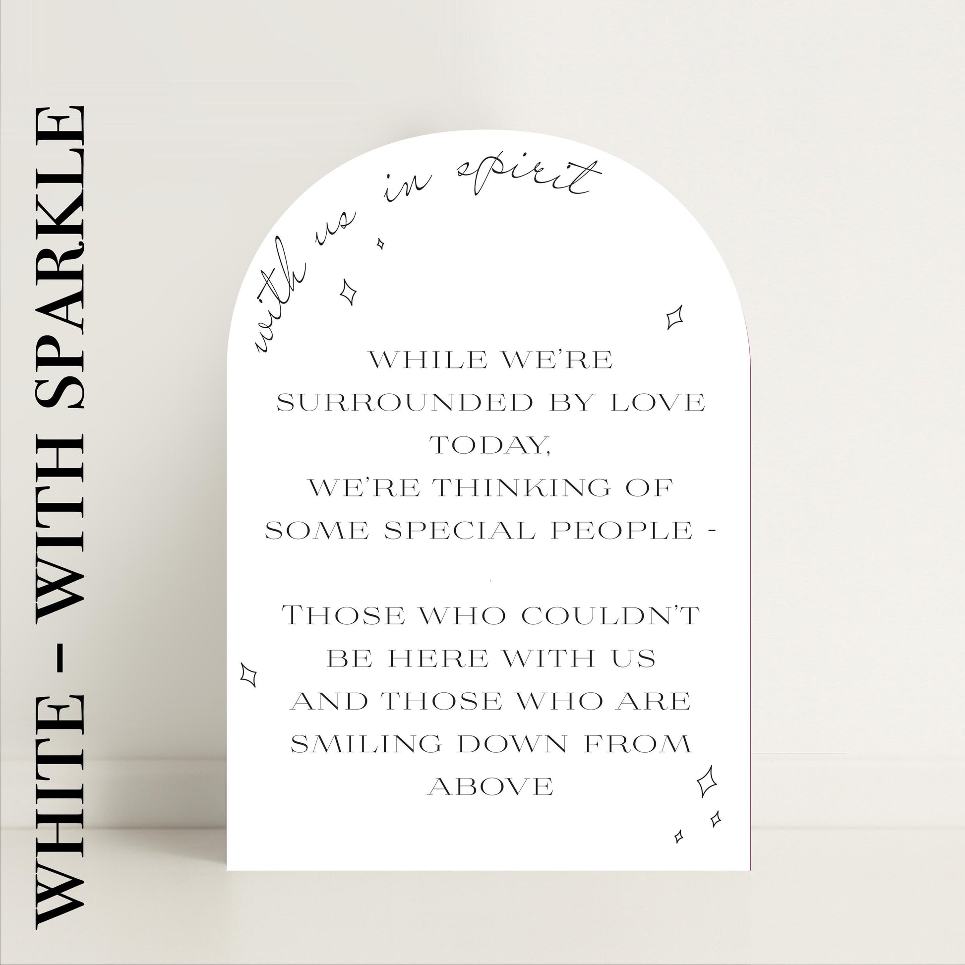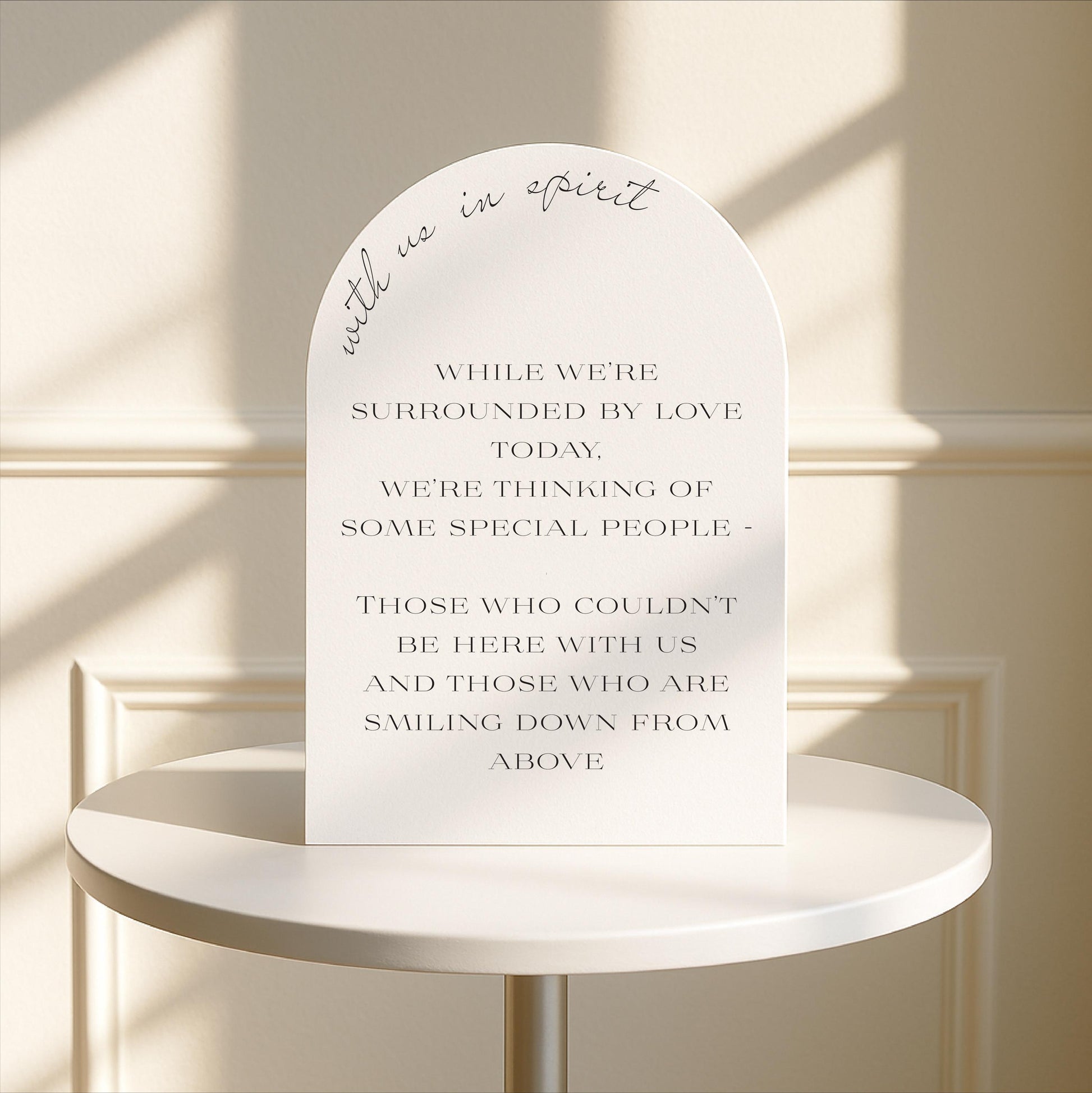Minimalist Arched Wedding Memorial Sign 'With us in Spirit': Print at Home Digital Download - Wedding Sign, Wedding Details, In Memory Of - Designed in the UK