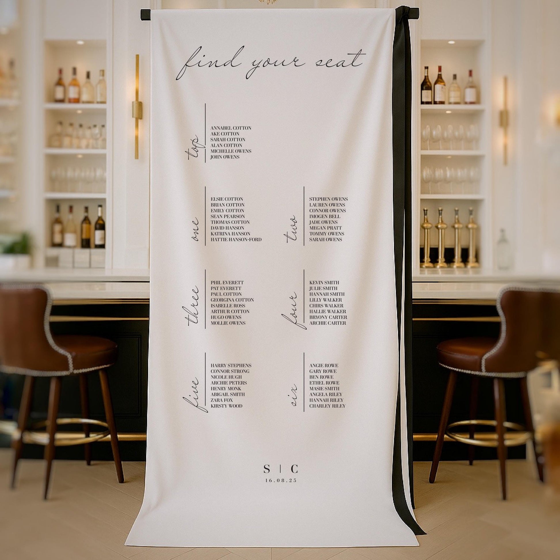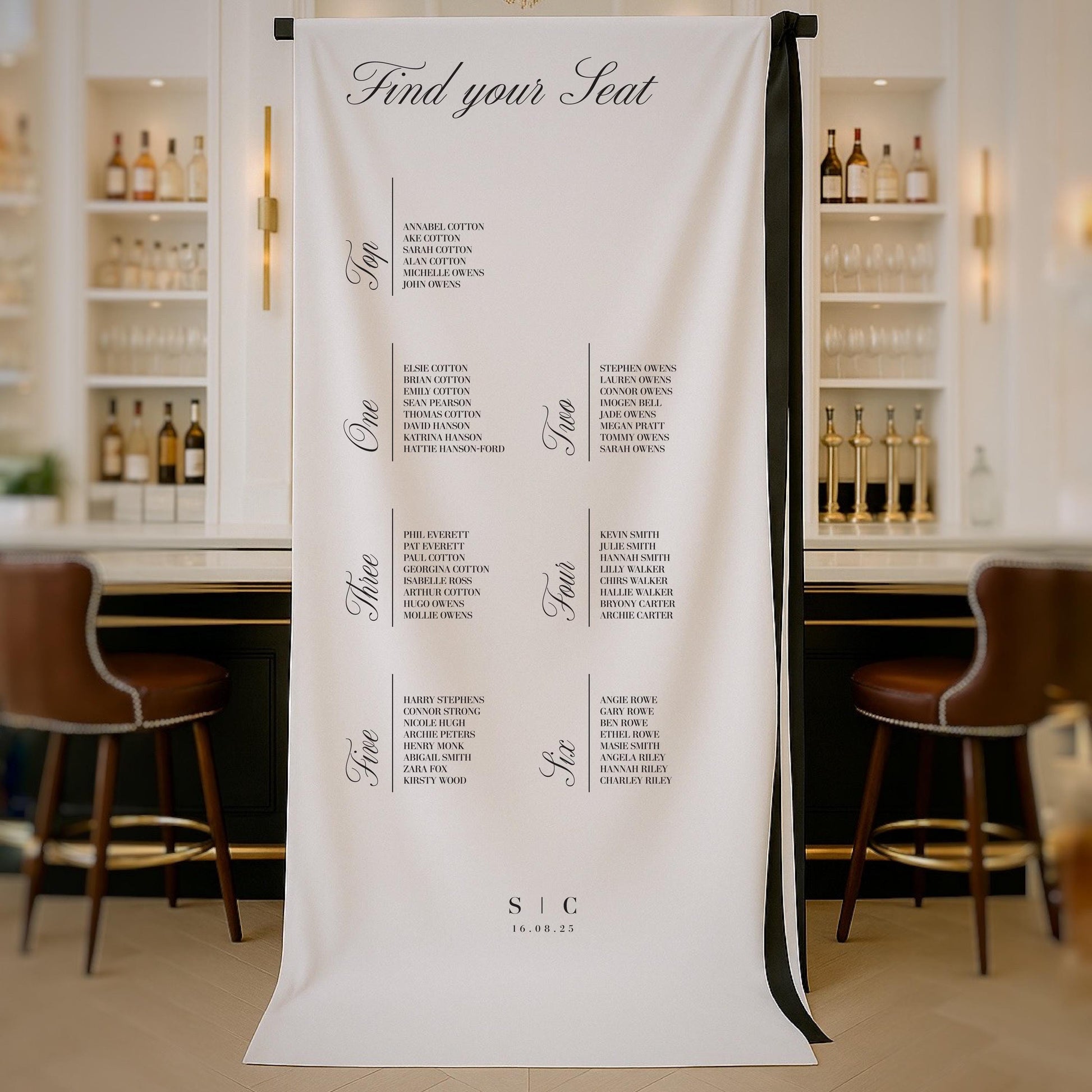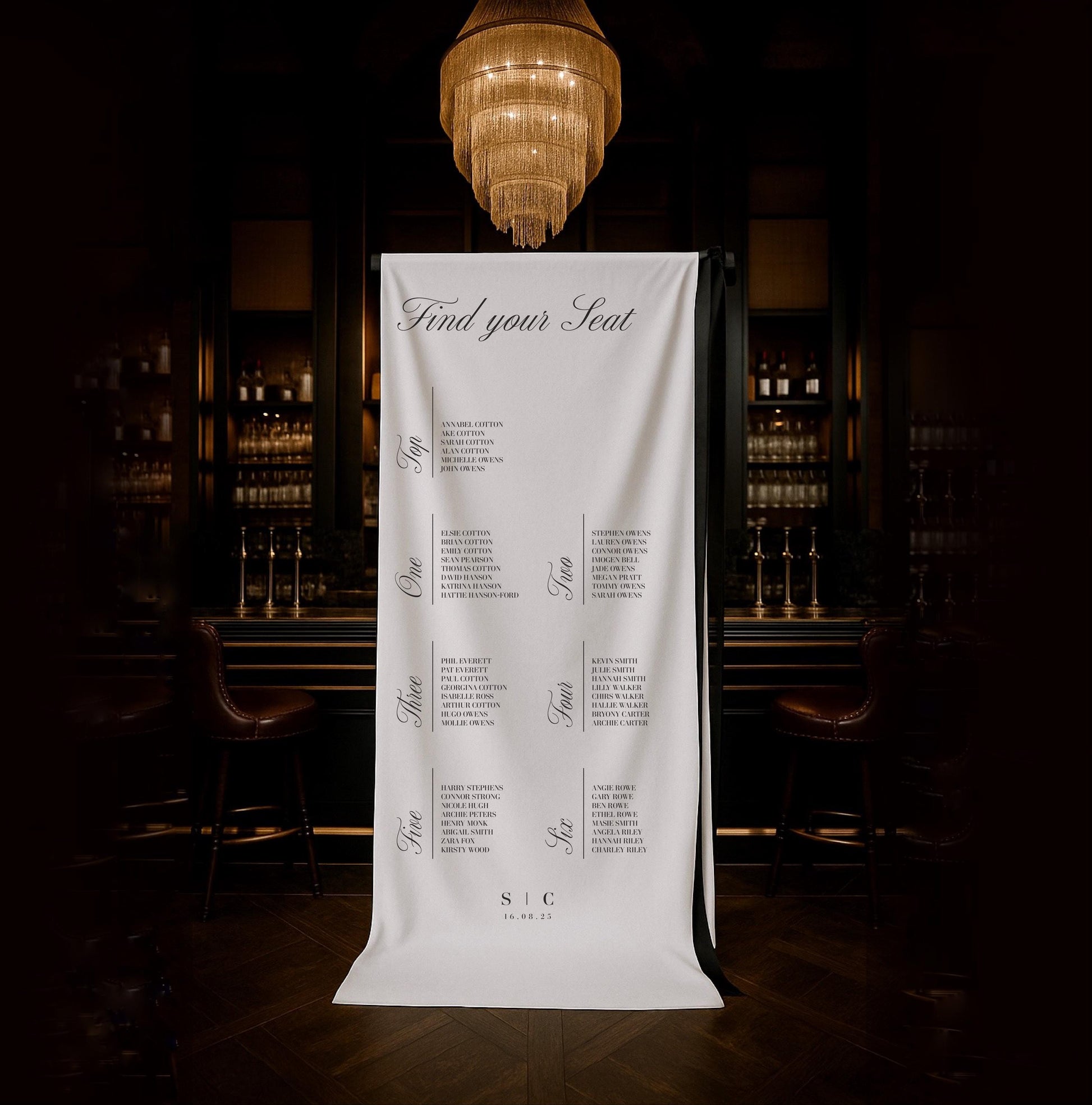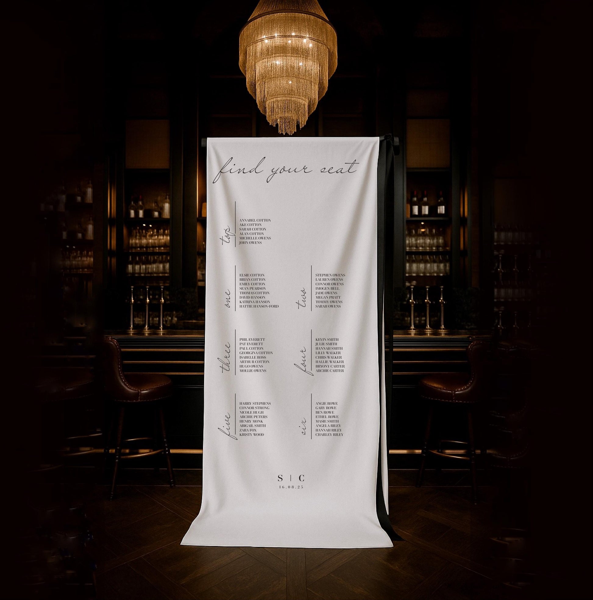 Minimalist Fabric Seating Chart Sign – Canvas sign, Fabric Sign, Monochrome, Wedding Seating Plan – Made to order & designed in the UK