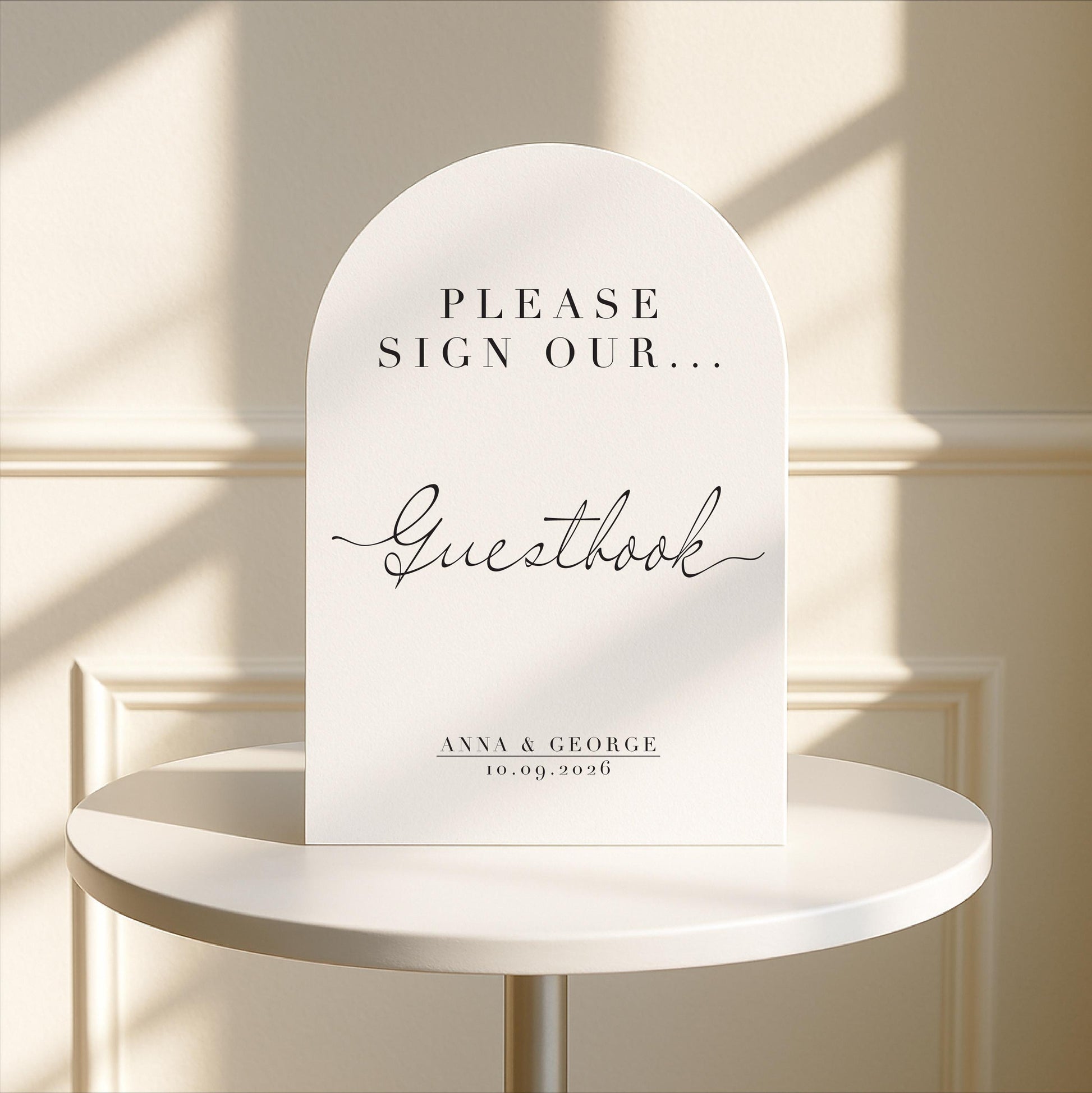 Minimalist Guestbook Arched Wedding Sign: Print at home digital download – Wedding Sign, Custom Sign, Luxury Sign, Wedding details – Designed in the UK