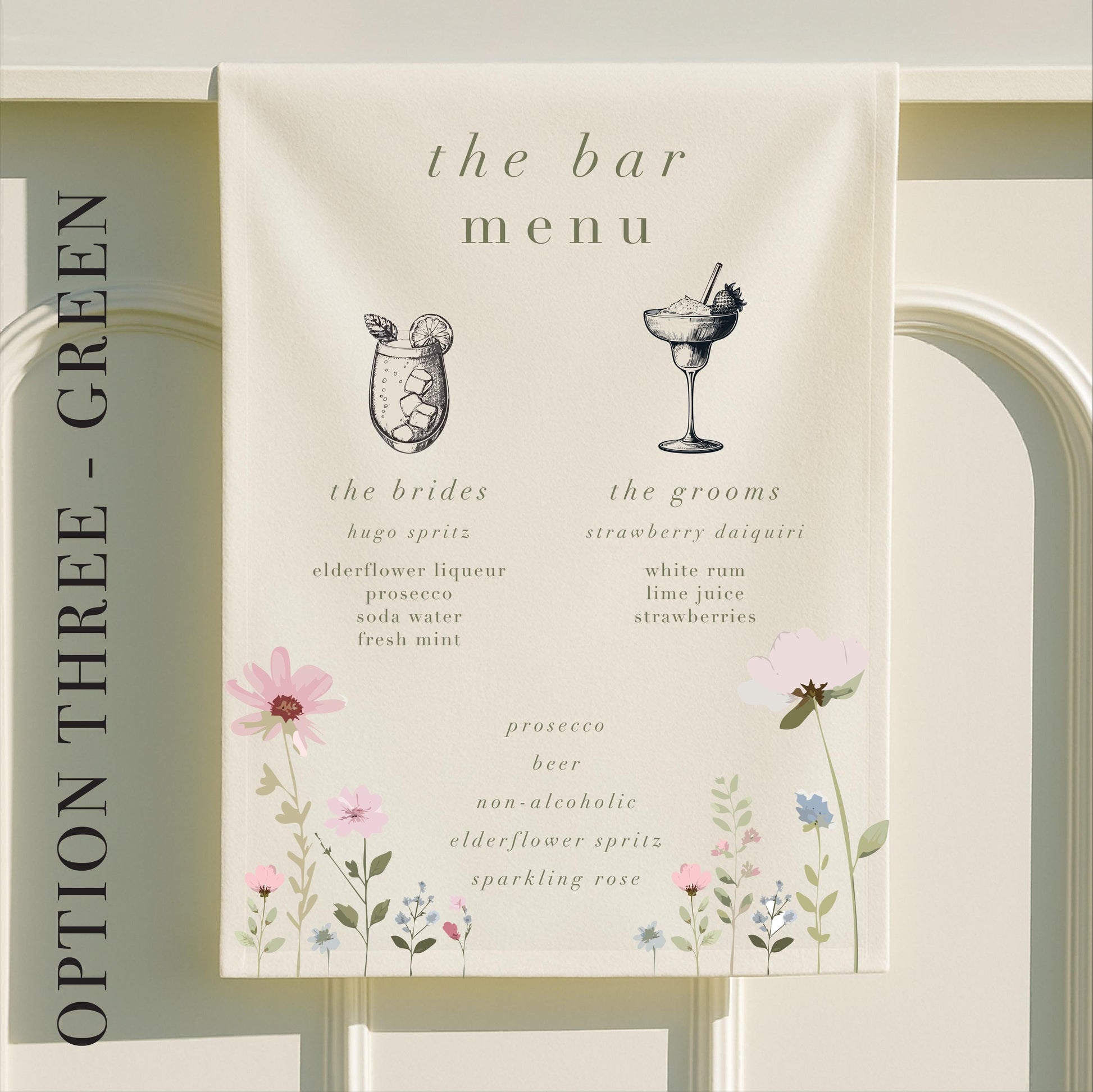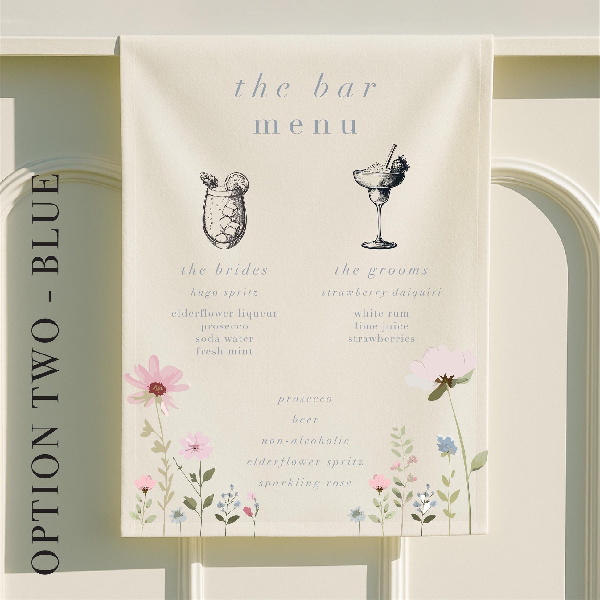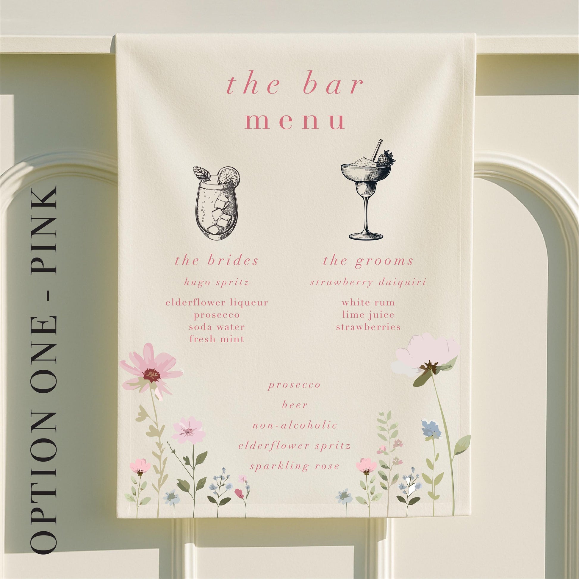 Personalised Ditsy Floral Fabric Wedding Bar Sign – Fabric Sign, Signature drinks, Vintage, Bar Menu - Made to order & designed in the UK