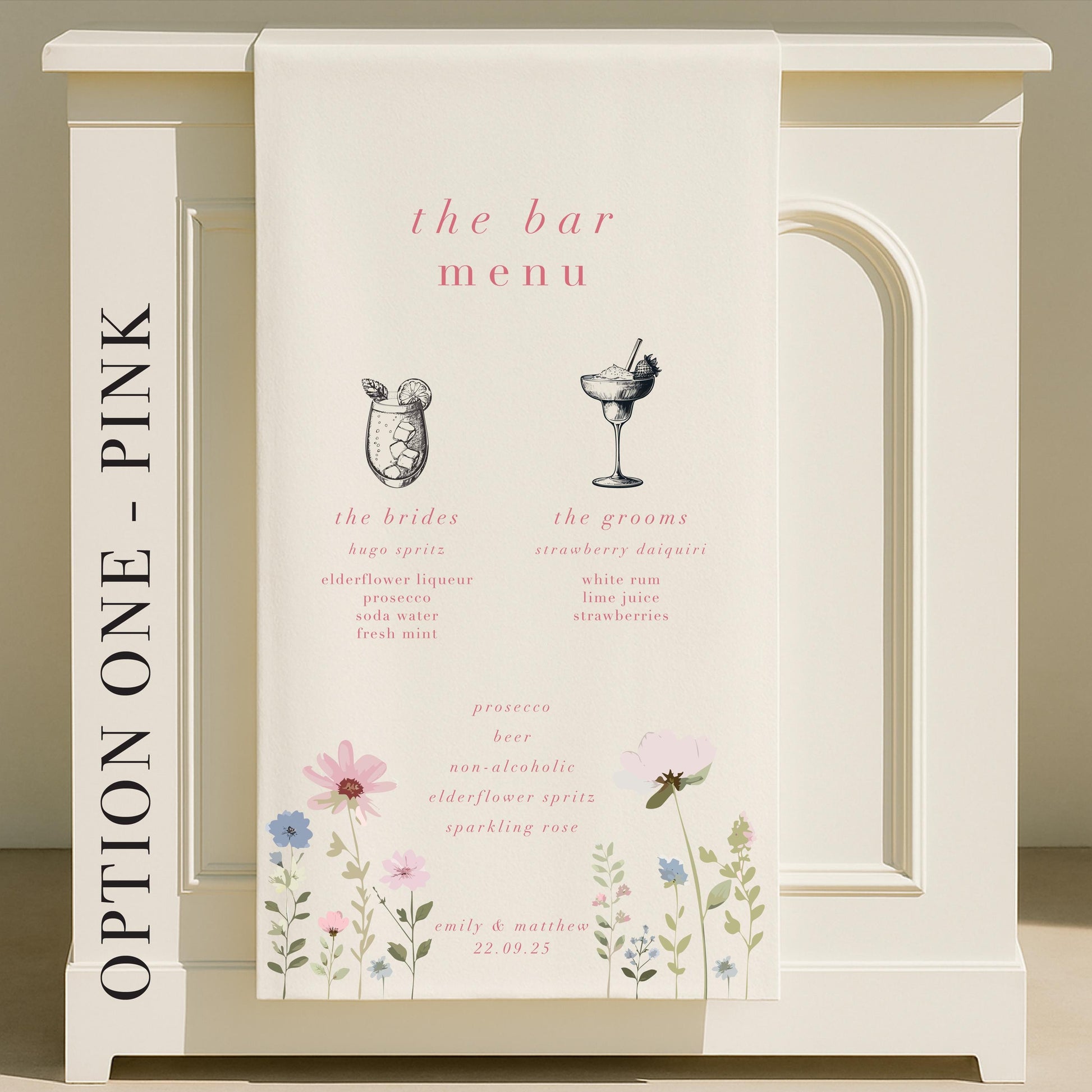 Personalised Ditsy Floral Fabric Wedding Bar Sign – Fabric Sign, Signature drinks, Vintage, Bar Menu - Made to order & designed in the UK