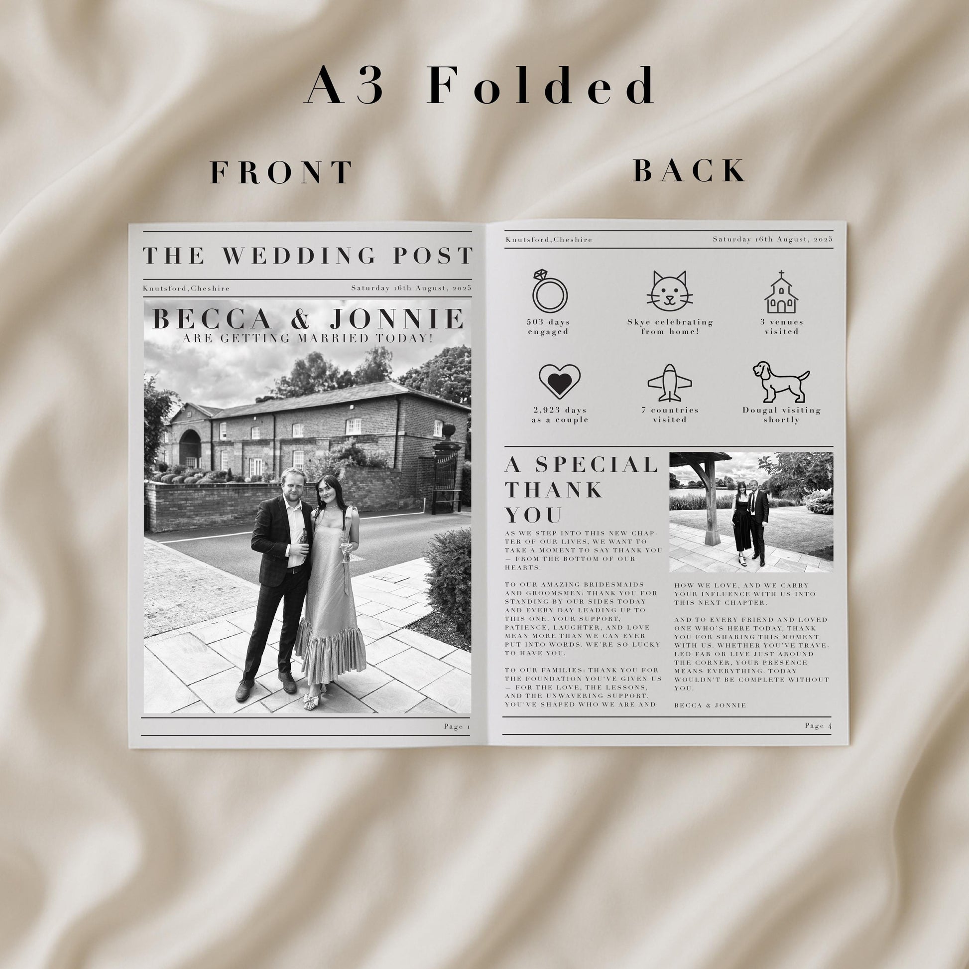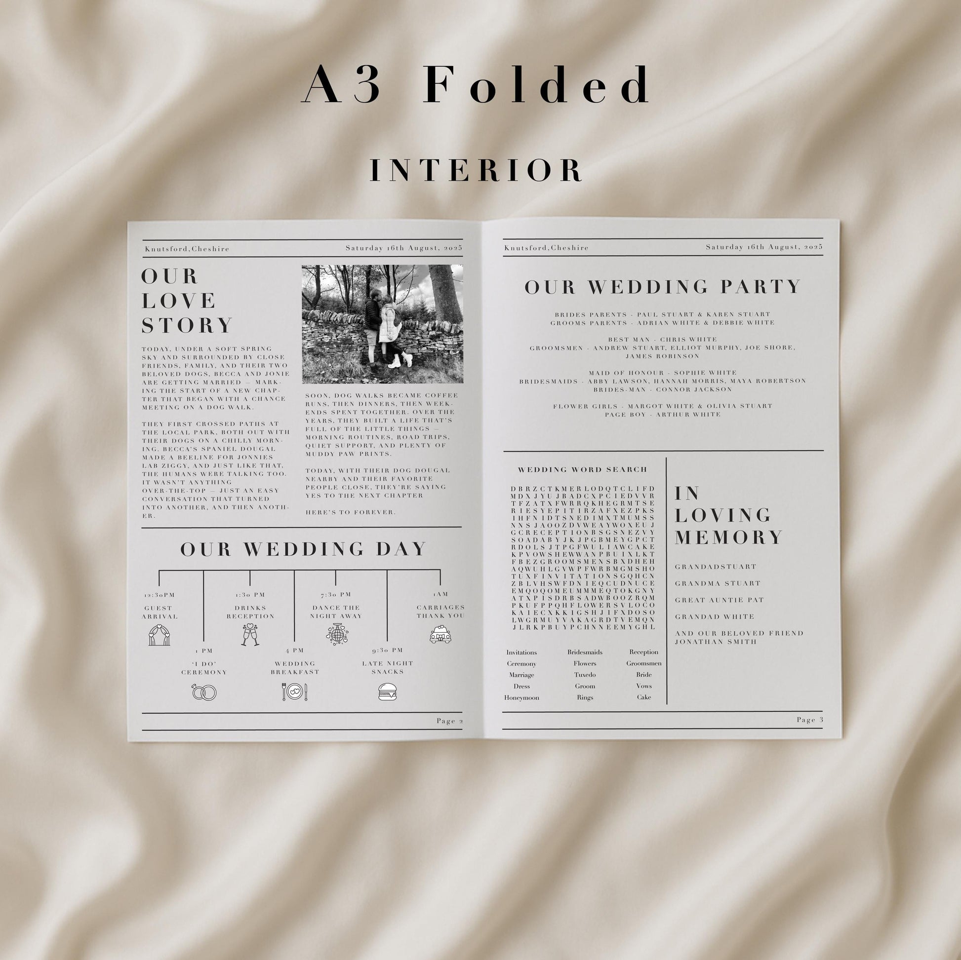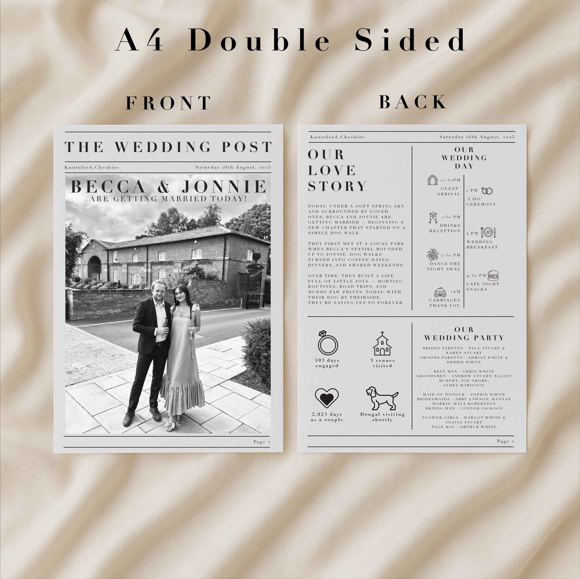 Personalised Wedding Newspaper - Wedding Favour, Order of the Day, Wedding Activity - Modern Aesthetic - Made to order & designed in the UK