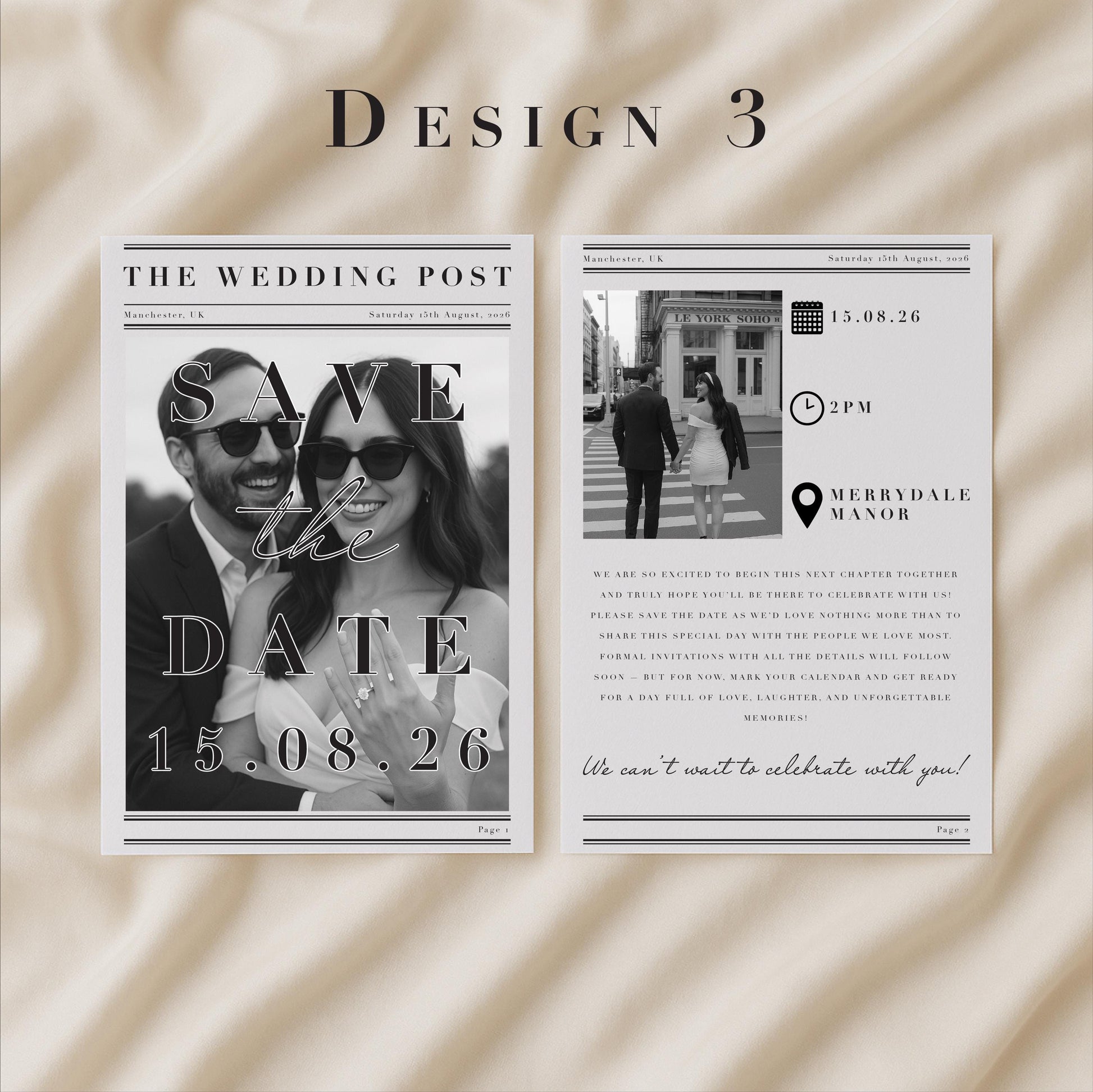 Save the date - Personalised Wedding Newspaper - Wedding invitation, Wedding trends - Modern Aesthetic - Made to order & designed in the UK