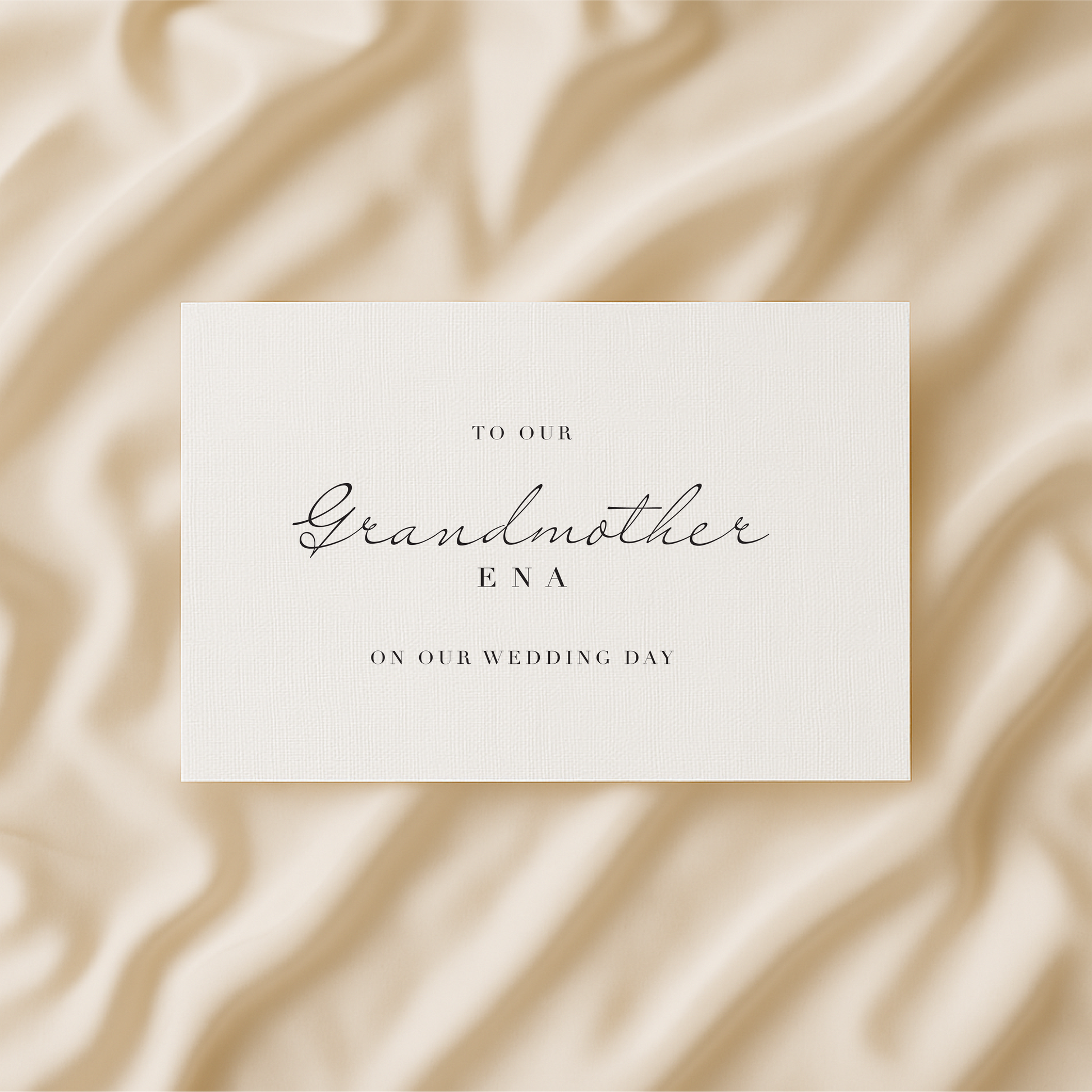- Name of recepient and/or title (example: 'Karen Mother of the Bride', 'Abby Bridesmaid', 'James Groomsman', 'Alice and Len Grandparents', etc)